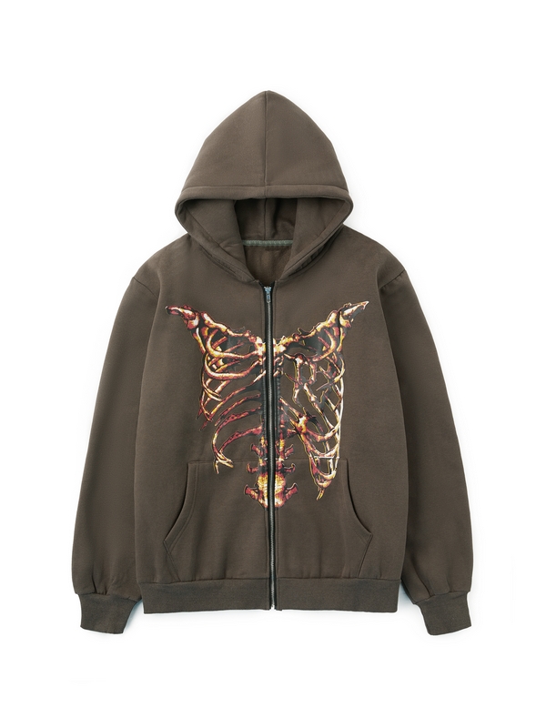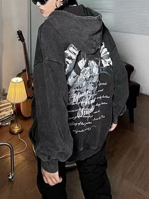 Übergroßer Kapuzenpullover mit Street-Character-Print und Reißverschluss