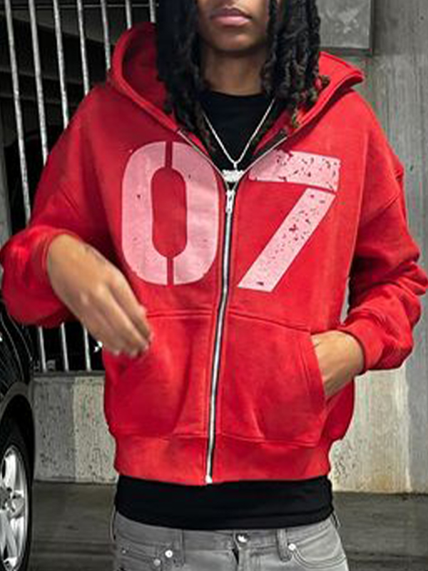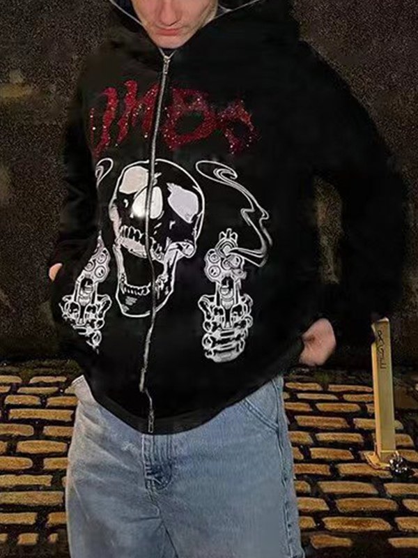 Street Blurred Skull Print Übergroßer Kapuzenpullover mit Reißverschluss