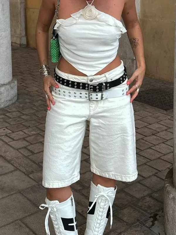 Umklappbare, zerrissene Burr-Denim-Shorts