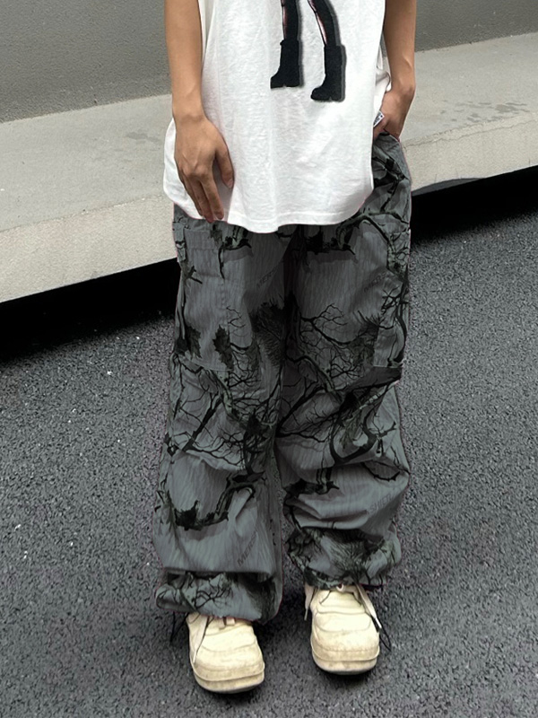 Branch-Graffiti-Print-Hose für Herren mit gebundenen Füßen und weitem Bein