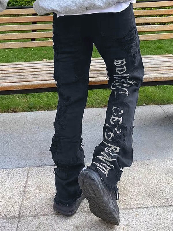 Herren-Jeans mit geradem Bein und bestickter Distressed-Rückenstickerei