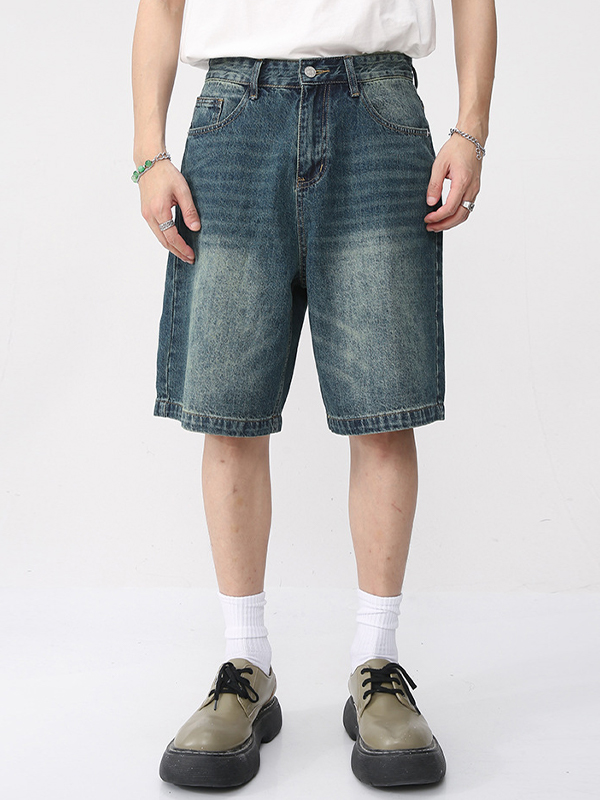 Lockere Retro-Jeansshorts im Used-Look für Herren