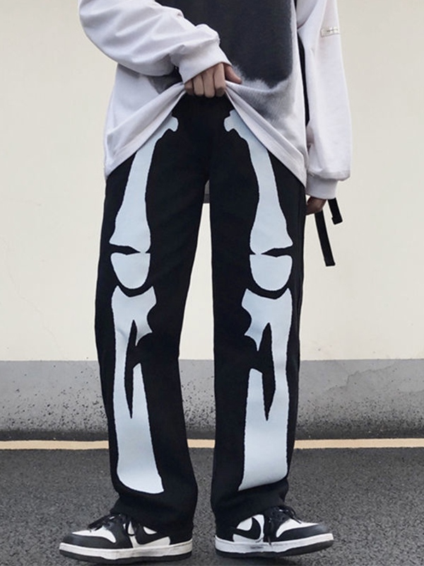 Herren-Jeans mit geradem Bein und geradem Bein und verwaschenem Skelett-Print in Kontrastfarbe