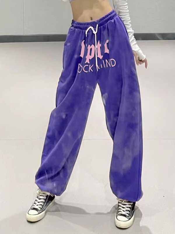 Hip-Pop-Lila-Jogginghose mit Buchstaben-Print und gebundenen Füßen
