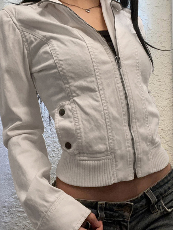Vintage braune Revershals-Reißverschluss-Kurzjacke