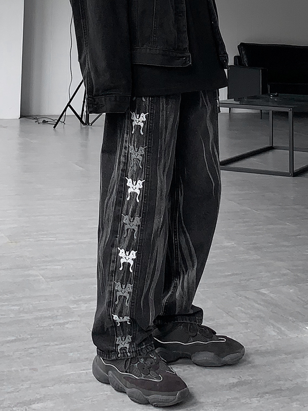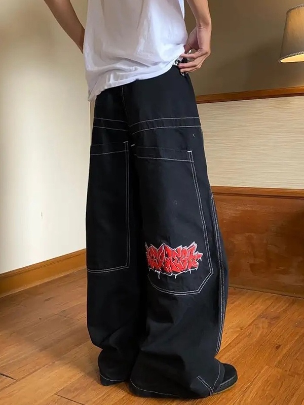 Lose Herrenjeans mit Hip-Pop-Grafikstickerei