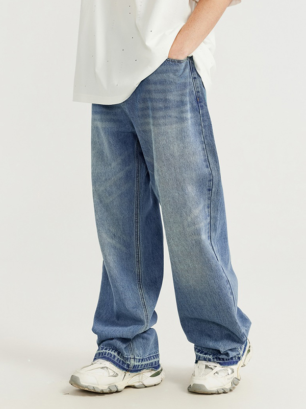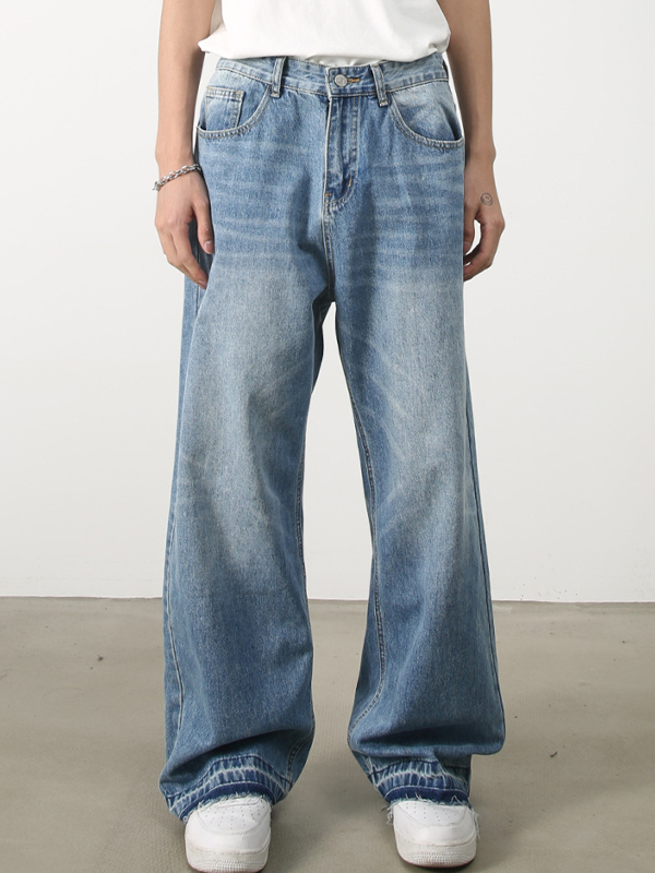 Weite Jeans mit ausgewaschenem Saum und weitem Bein