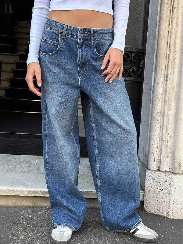 Einfache, lockere Jeans mit mittelhoher Taille und einfarbiger Passform