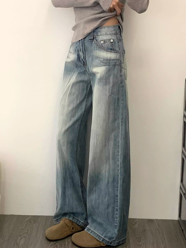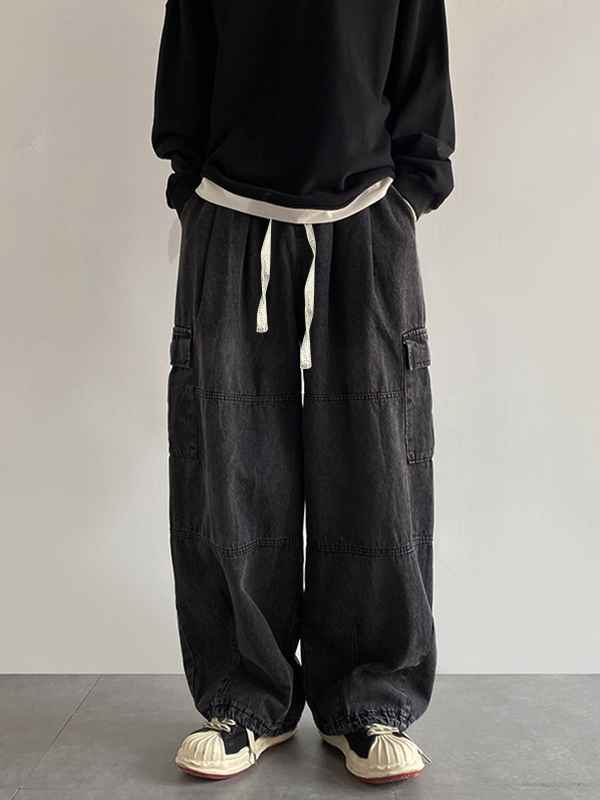 Lockere, verwaschene Cargo-Jeans mit weitem Bein und unregelmäßiger Passform