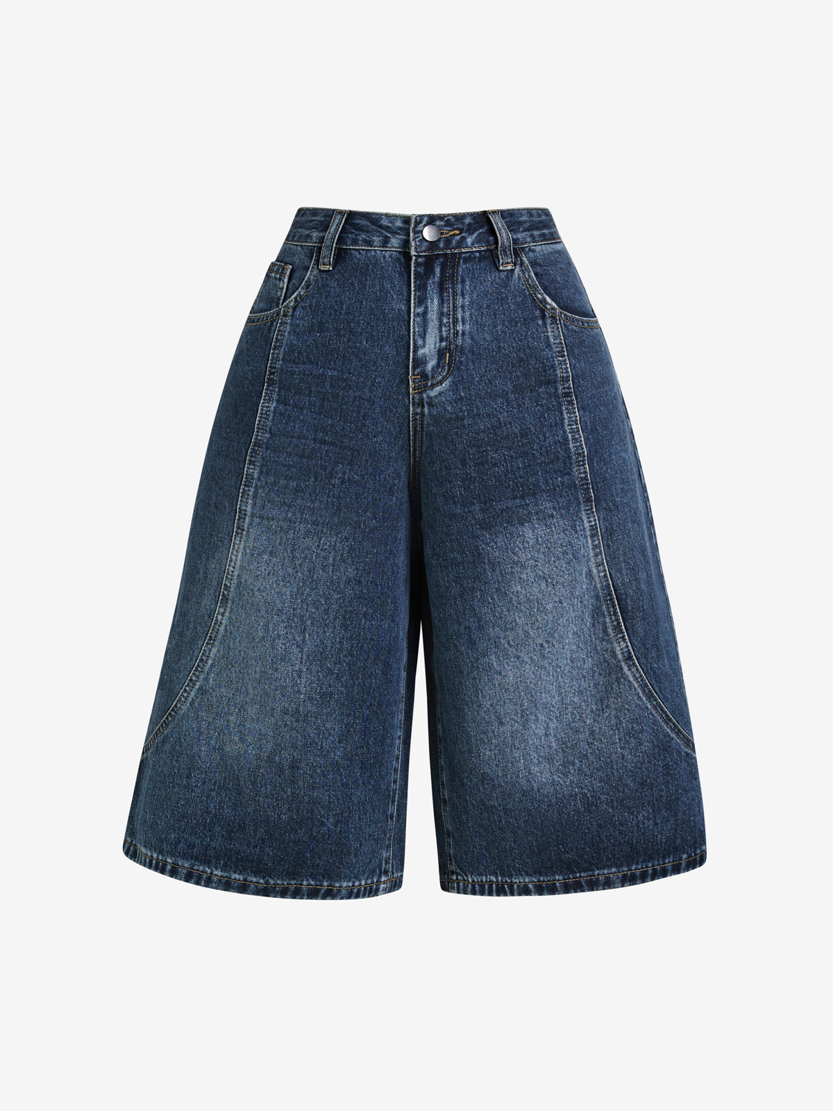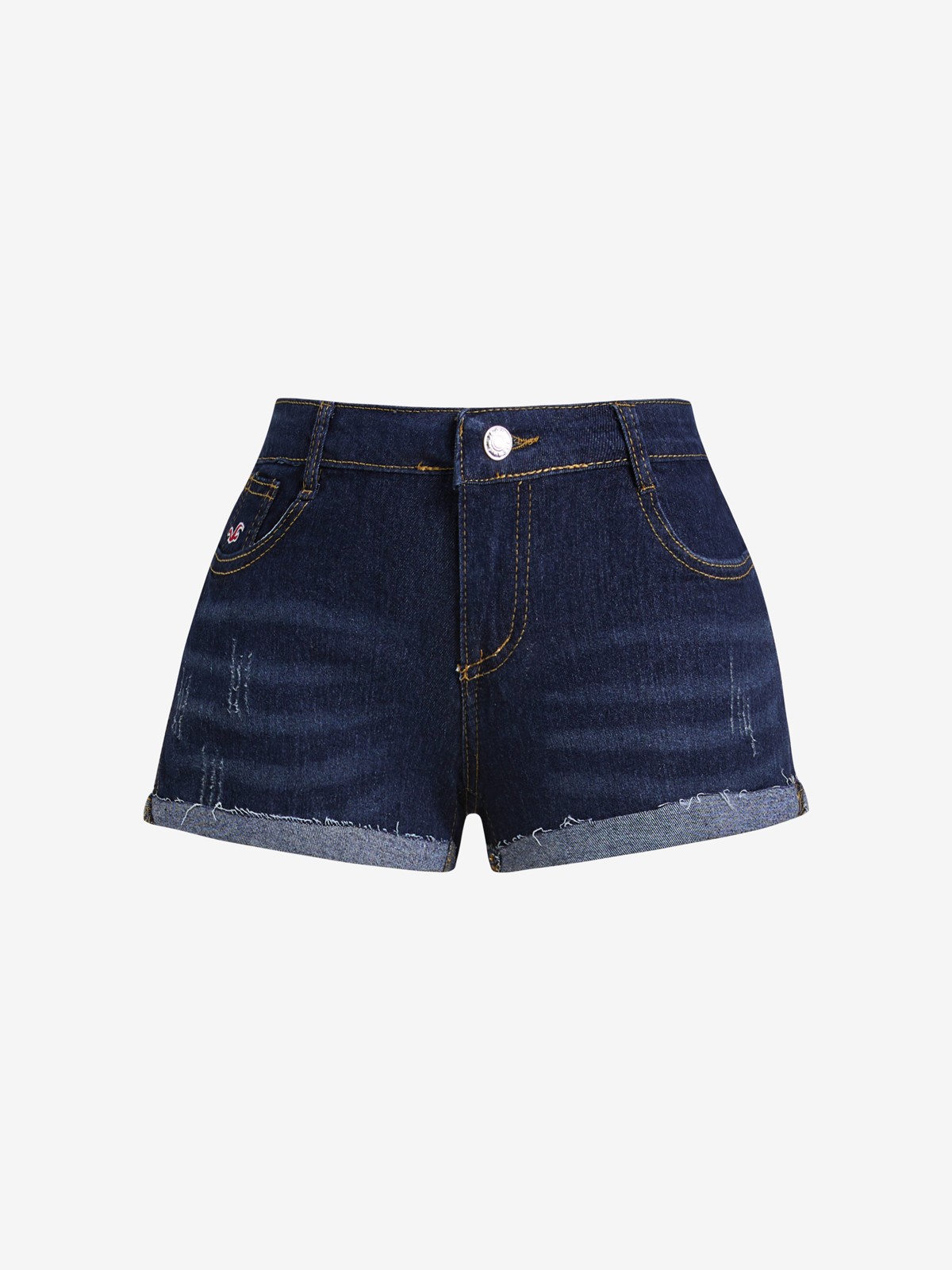 Umklappbare, zerrissene Burr-Denim-Shorts