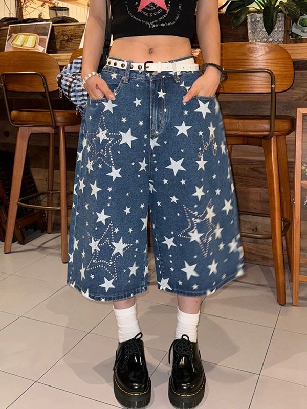 Amerikanische Retro-Jeansshorts mit fünfzackigem Stern und Strass