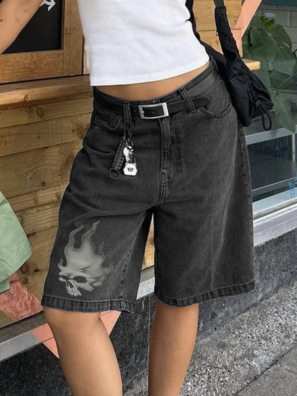 Jeansshorts mit geradem Bein und Skelett-Muster