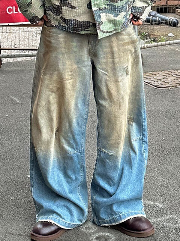 Lose Jeans für Herren im Vintage-Stil mit zerrissenen Aufnähern in Kontrastfarbe