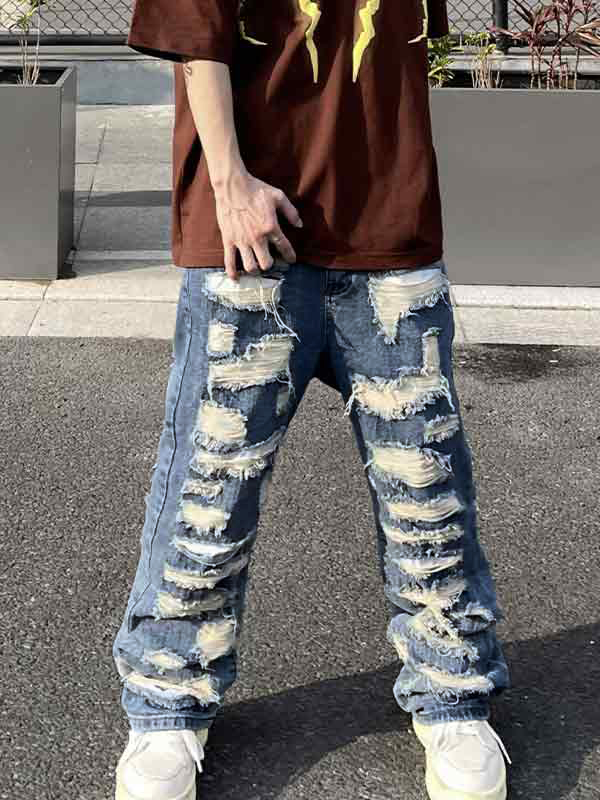 Lockere Herrenjeans im Multi-Tattered-Design