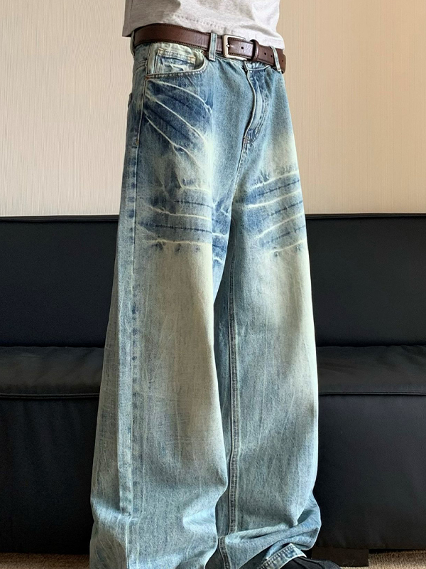 Lockere, gerüschte Vintage-Jeans für Herren