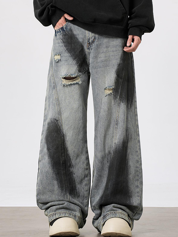 Verwaschene, zerrissene, lockere Jeans für Herren