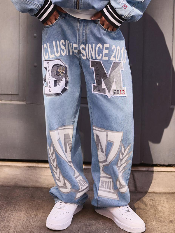 Lose Herrenjeans mit Buchstabenstickerei und Kordelzug