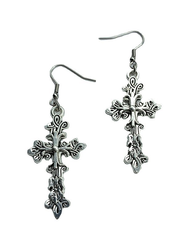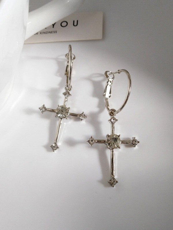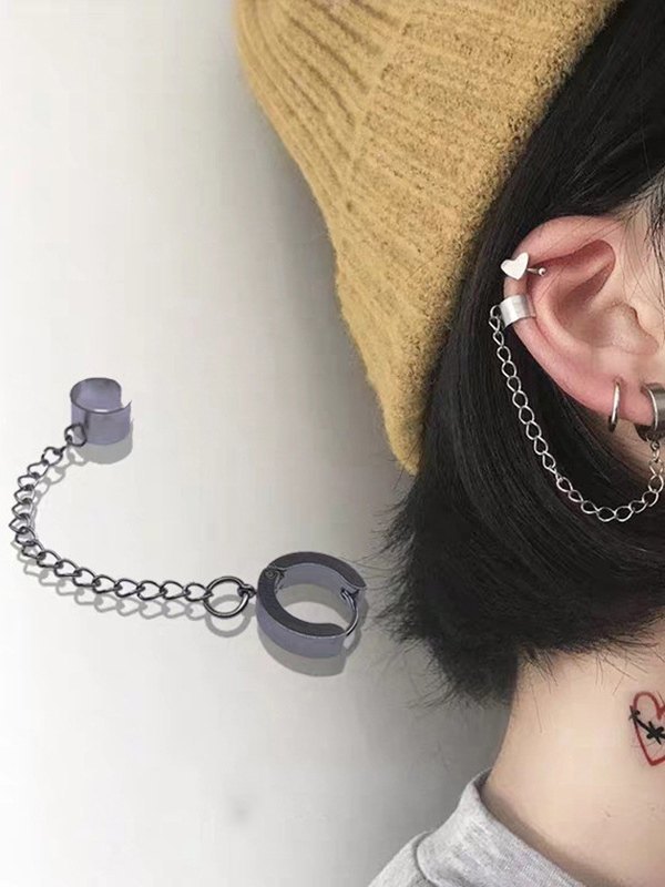 Punk-Ohrring mit Kreuz-Herz-Schleife, Charm-Kette und Manschette