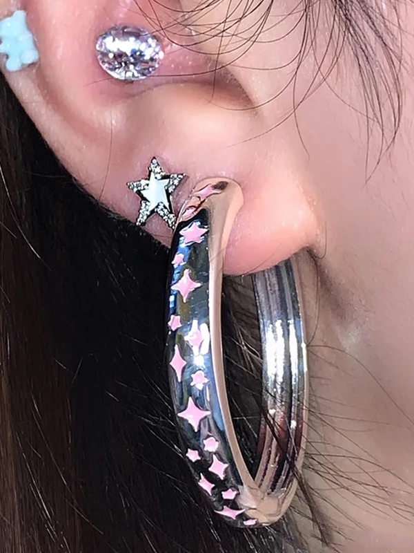 Y2K Ohrstecker mit rosa Stern-Gravur