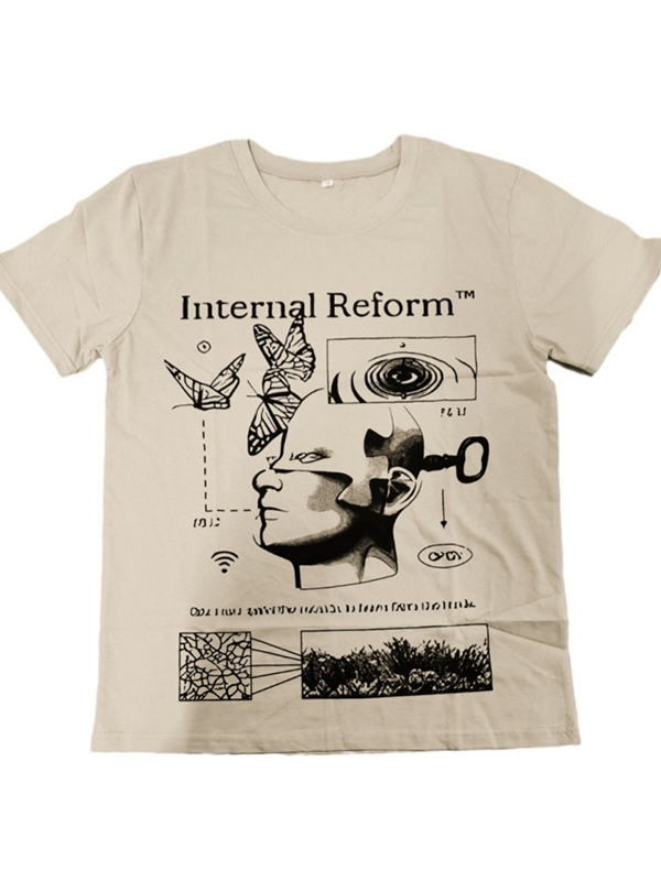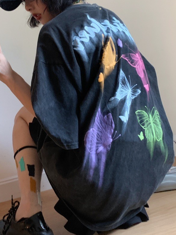 Übergroßes Kurzarm-T-Shirt mit Vintage-Graffiti-Schmetterling
