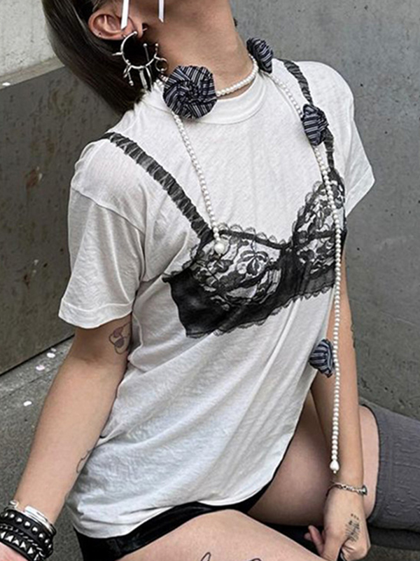 Übergroßes, kurzärmliges T-Shirt mit Spitzenunterwäsche
