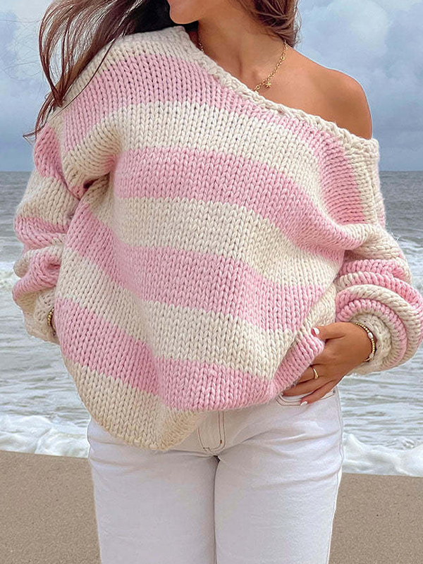 Schulterfreie, übergroße Pullover mit Streifenmuster