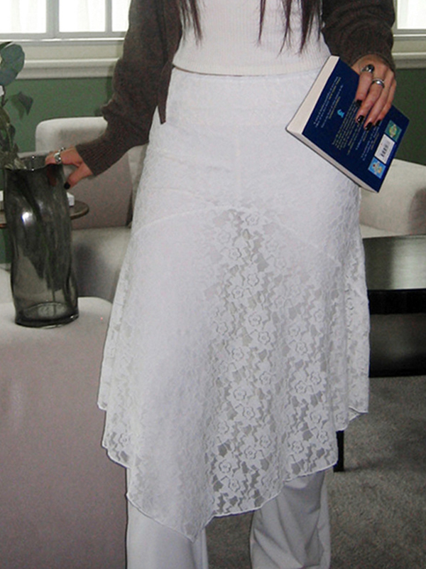 Durchsichtiger Midirock mit Spitzenspleiß und unregelmäßigem Saum