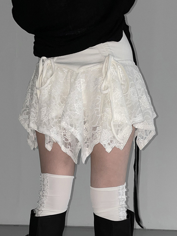 Mädchenhafter unregelmäßiger Minirock mit Spitzen-Patchwork