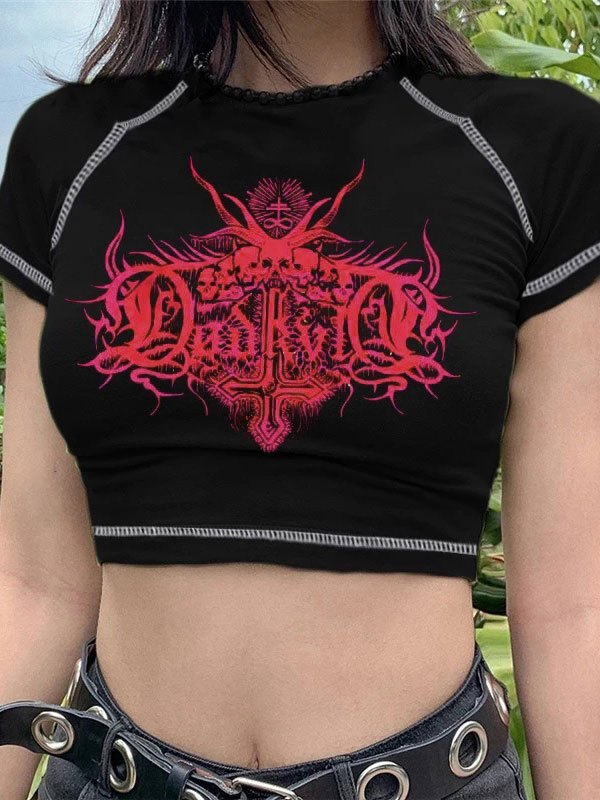 Crop Top mit Totenkopf-Power-Print
