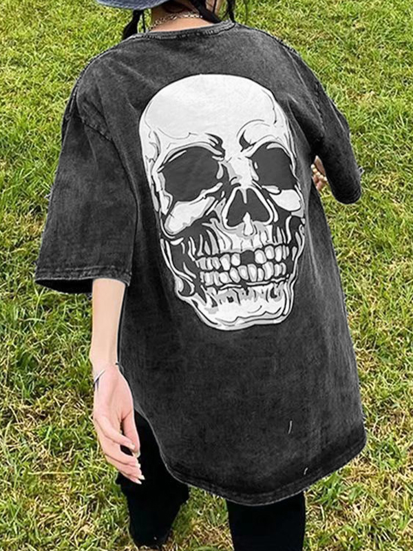 Kurzärmliges Herren-T-Shirt mit Distressed Skull Print in Waschung