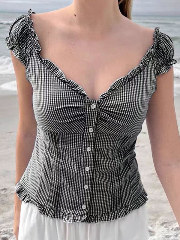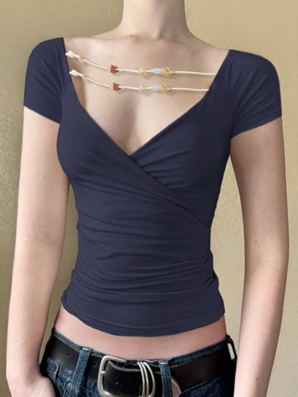 Einfarbiges, kurzärmliges T-Shirt mit V-Ausschnitt