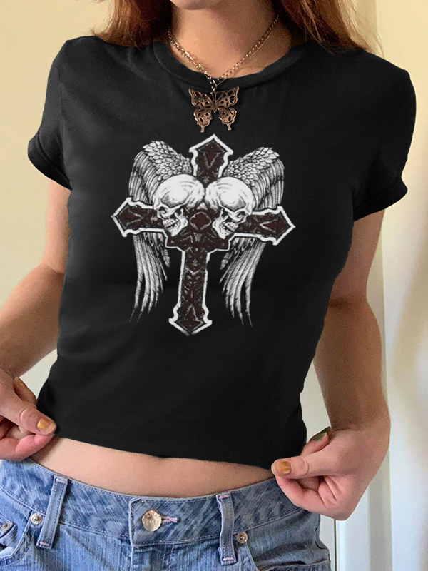 Kurze Ärmel mit kleinem Teufelsschädel-Print