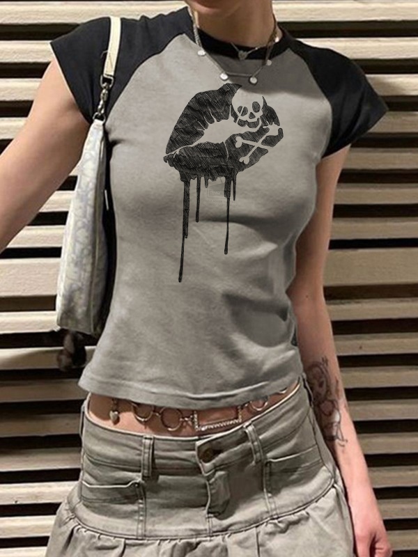 Ragla-Kurzarm-T-Shirt mit Vintage-Lippendruck
