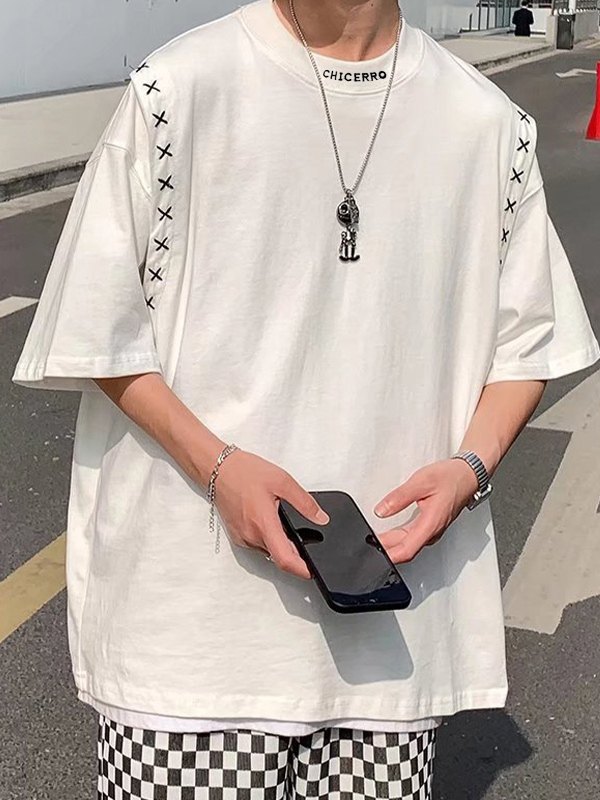 Besticktes Patchwork-Kurzarm-T-Shirt für Herren