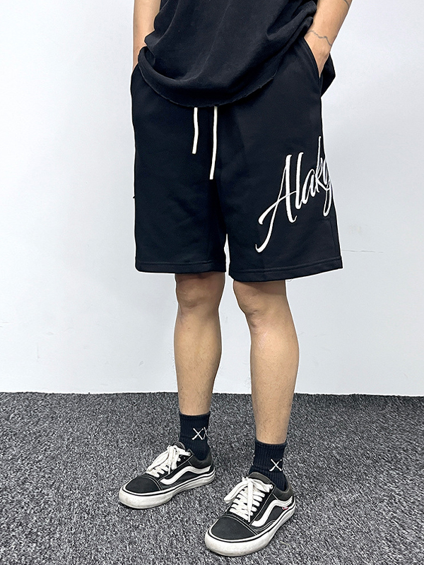 Lockere, gerade, lässige Shorts mit bestickten Buchstaben für Herren