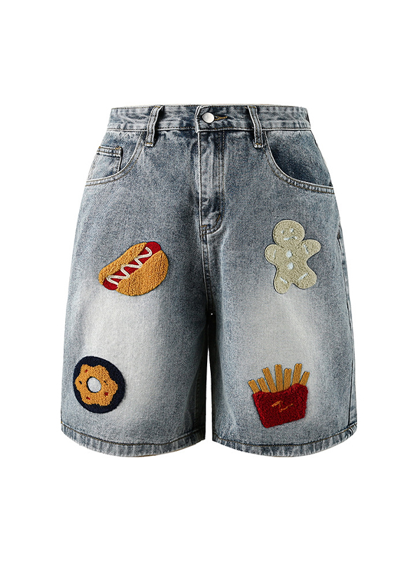 Gerade, lockere Denim-Shorts für Herren mit Distressed-Stickerei
