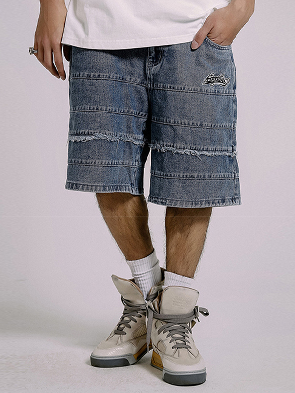Lässige Jeansshorts für Herren mit Buchstabenstickerei