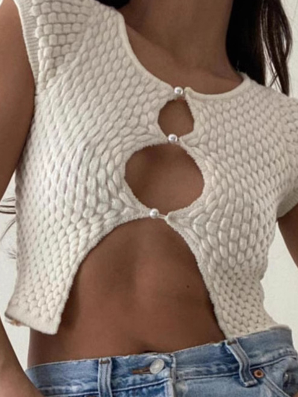 Einfarbiger Strick mit einer Schulter und kurzen Ärmeln