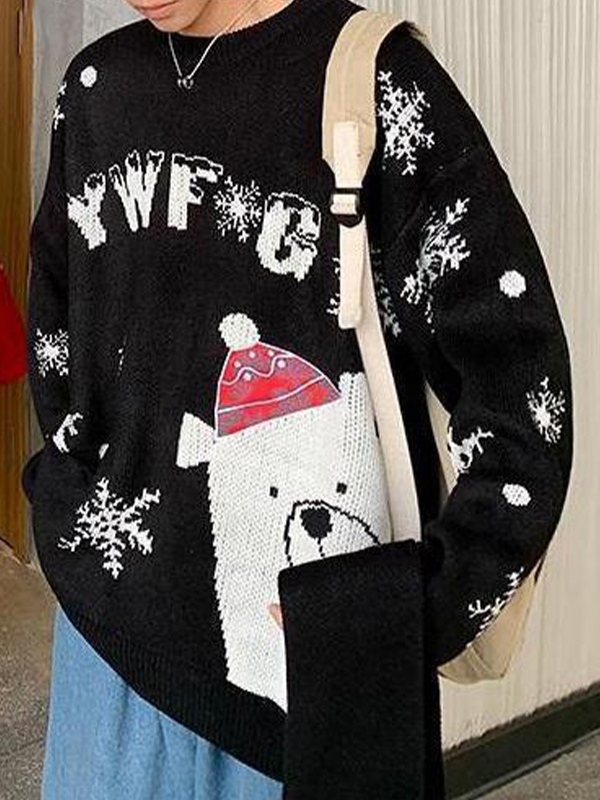 Herren-Weihnachts-Baggy-Pullover mit Element-Jacquardmuster
