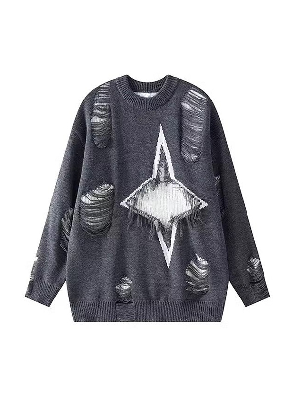 Herrenpullover mit ausgefranstem Stern-Tattered-Design