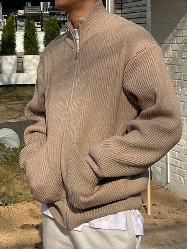 Solider Herrenpullover mit zwei Taschen und Reißverschluss
