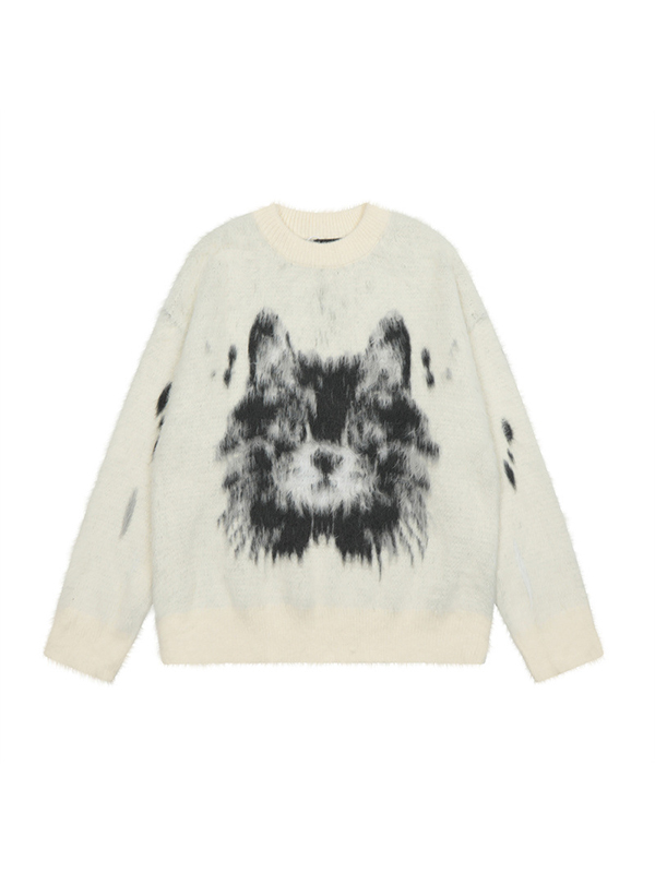 Herren Vintage Abstrakter Kitty Jacquard Pullover Pullover