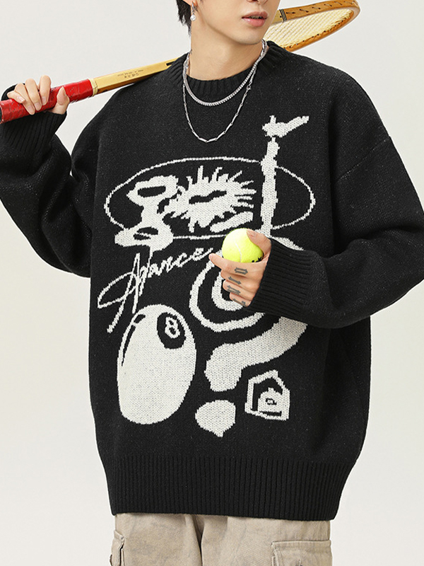 Herren-Rundhalspullover aus Jacquard mit Star-Graffiti-Motiv
