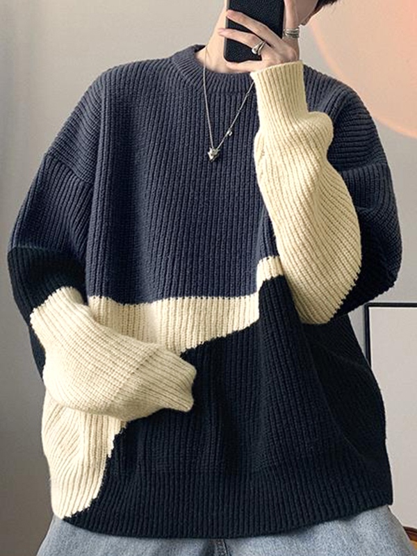 Vintage-Pullover mit Splice-Kontrastfarbe für Herren