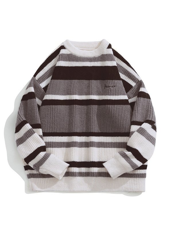 Lockerer Herrenpullover mit Fuzzy-Streifen-Print