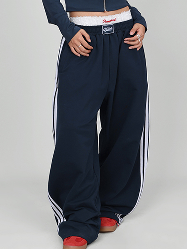 Hip-Pop-Lila-Jogginghose mit Buchstaben-Print und gebundenen Füßen
