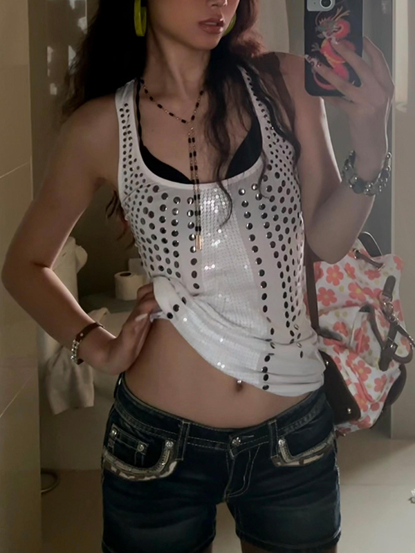 Designer-Tanktop mit Spaghettiträgern und Pailletten