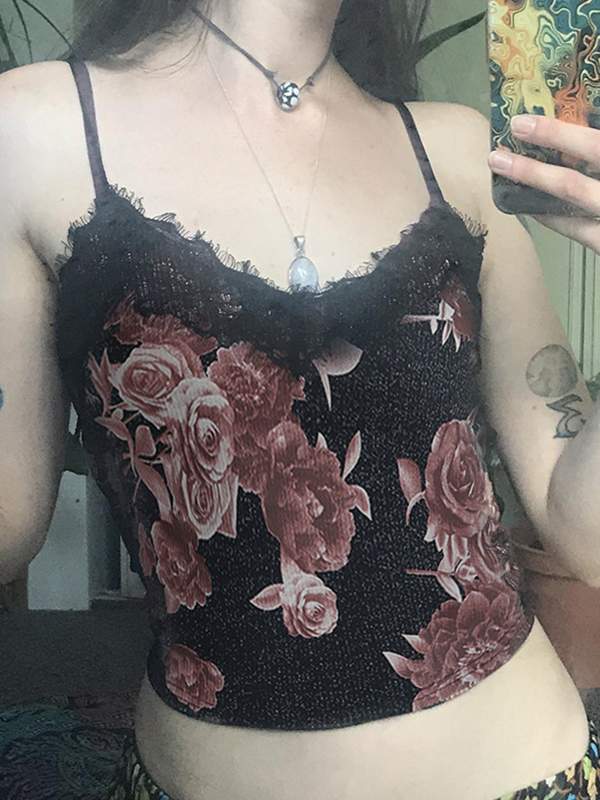 Cami-Top mit Spitzen-Patchwork und Schleife auf der Brust