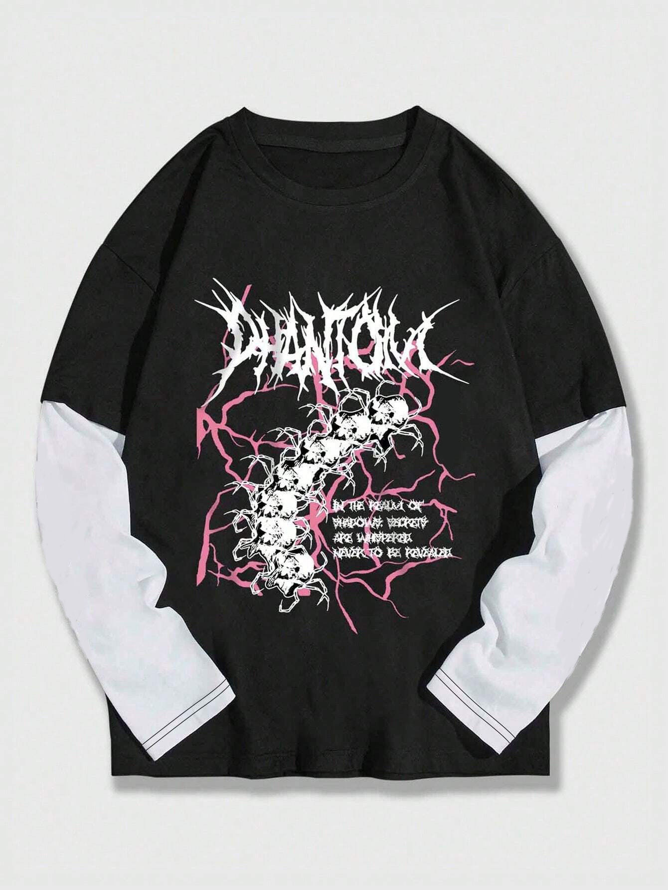 Übergroßes Langarm-T-Shirt mit Retro-Print für Herren