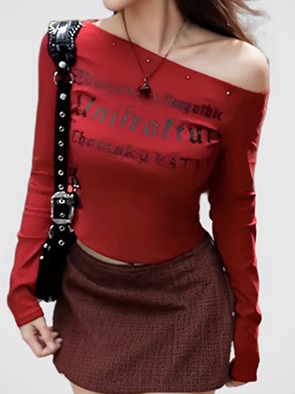 Langarm-T-Shirt mit One-Shoulder-Lettering